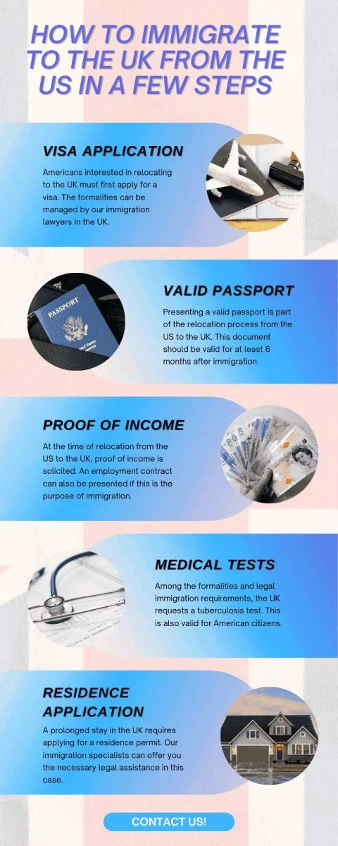 These are some of the situations you may find yourself in when you want to immigrate to the UK from the US. You can learn more about the required visa and the formalities that must be completed from our specialists. Please discover the following infographic with details on this topic: